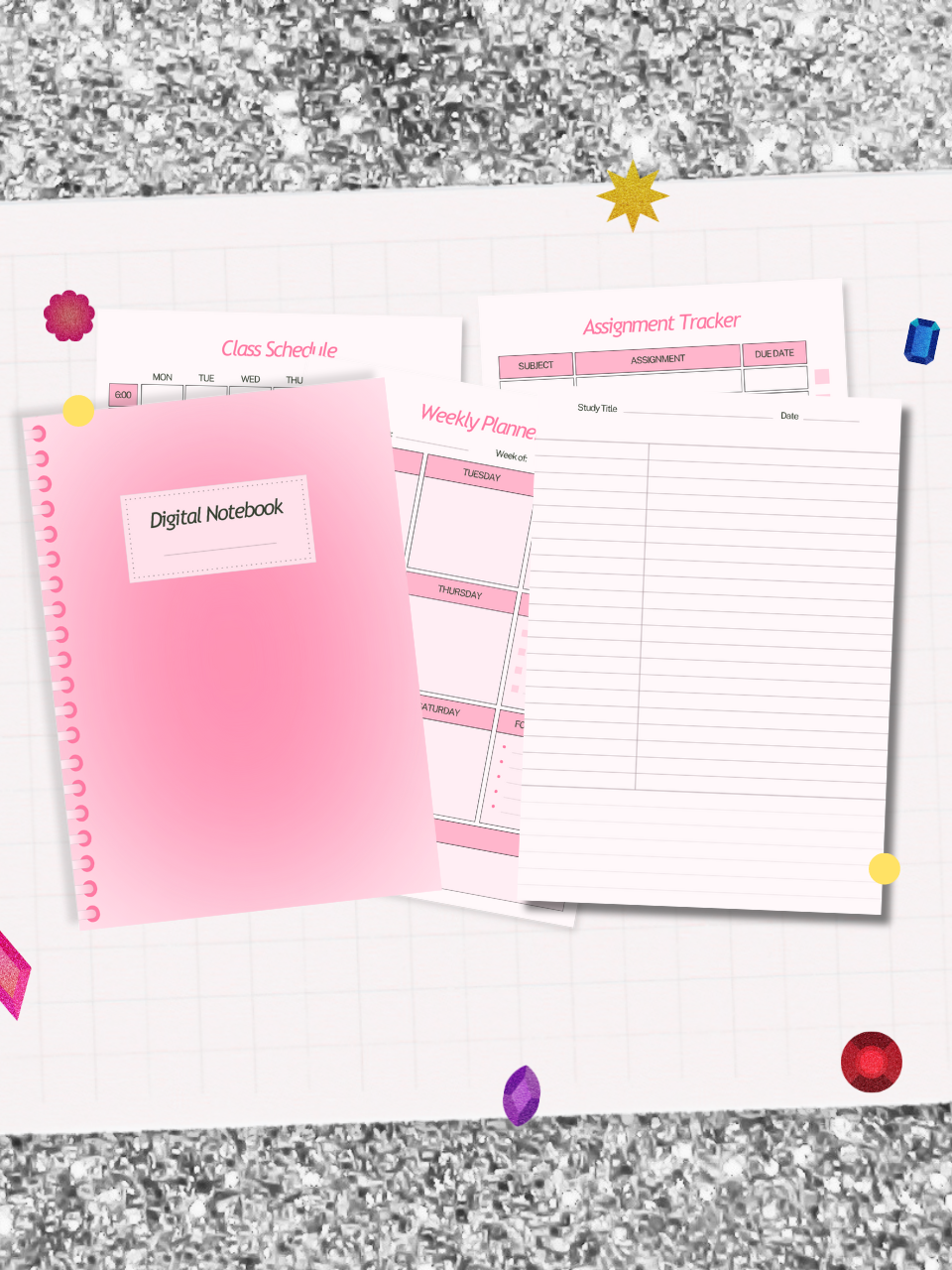3οΈβ£ Assignment Tracker (x4): Crush deadlines with 4 sassy assignment trackers. Say goodbye to those last-minute panics! ππ